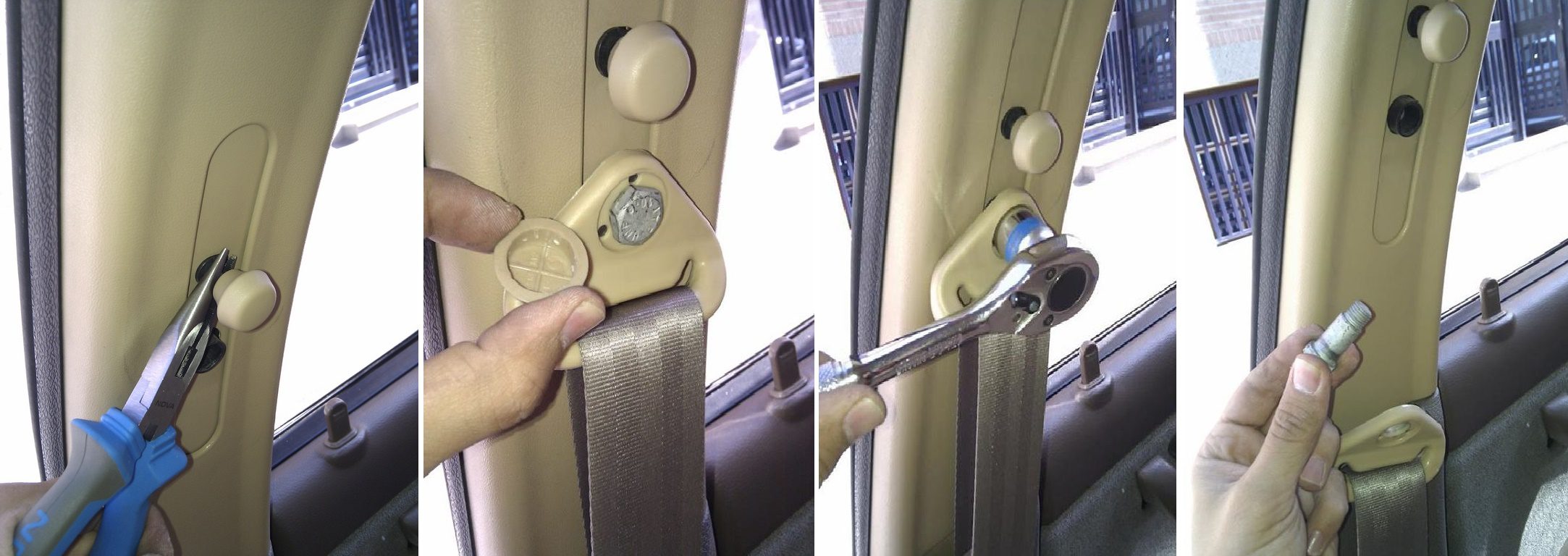 روکش پلاستیکی روی مهره ی بند کمربند را با استفاده از پیچ گشتی تخت خارج کنید.