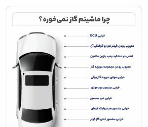 در عکس زیر سعی شده است خیلی راحت و مختصر به مهمترین دلایل گاز نخوردن موتور در خودرو اشاره کنیم.
