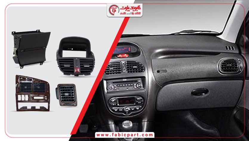 مانند قاب زیر فرمان، قاب دریچههای کناری، قاب نمایشگر میانی، خارها و بستهای مخصوص نصب. تمامی این اجزا بر اساس مدل اصلی خودرو طراحی و قالبگیری شدهاند.