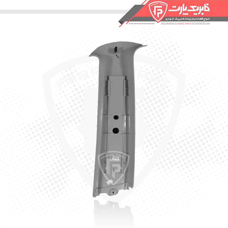 قاب ستون بالا وسط راست دنا طوسی از جنس پلاستیک فشرده ساخته شده است و دارای رنگ طوسی است. این قاب دارای یک قسمت داخلی و یک قسمت خارجی است. قسمت داخلی قاب به ستون وسط سمت راست خودرو متصل میشود و قسمت خارجی قاب ظاهر بیرونی خودرو را تکمیل میکند.