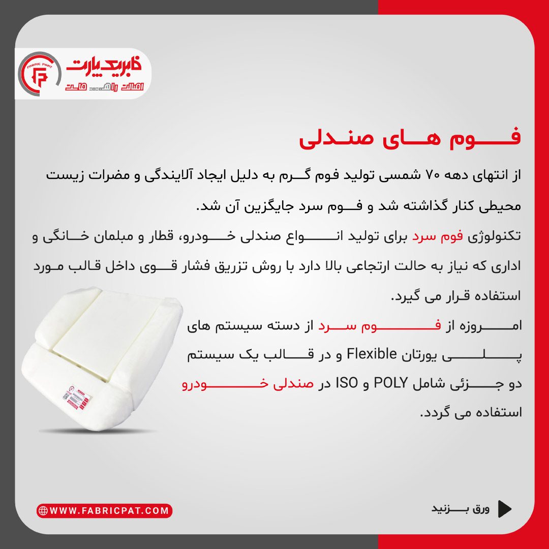 محیطی کنار گذاشته شد و فـوم سرد جایگزین آن شد تکنولوژی فوم سرد برای تولید انـواع صندلی خــودرو، قطار و مبلمان خـانگی و